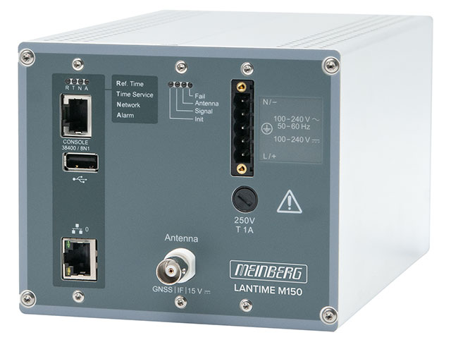 LANTIME M150 time servers can be installed to provide accurate time to small and medium sized computer networks. This entry level time server synchronises all systems either NTP- or SNTP-compatible utilizing a built-in Meinberg GPS radio clock as its primary reference time source.