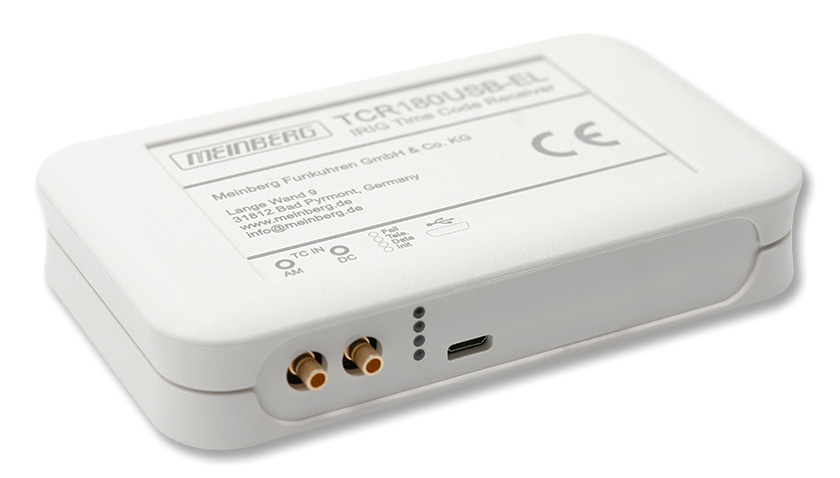 The input for unmodulated or DCLS (DC Level Shift) time codes also has an SMB connector. The receiver circuit of the TCR180USB-EL is galvanically isolated from the signal input via an integrated optocoupler.